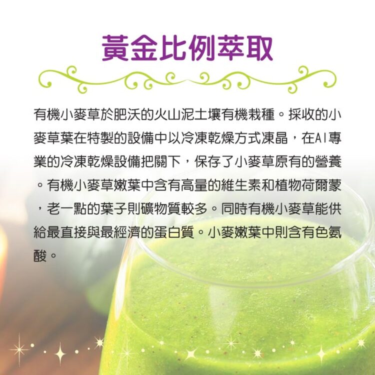 成分:有機小麥草汁粉(美國)